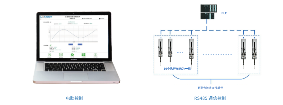 支持通道扩展和级联,各执行单元可拥有独立参数。电脑通过专用PC控制软件,其他上位机通过RS485/ModbusRTU,控制各执行单元独立运行